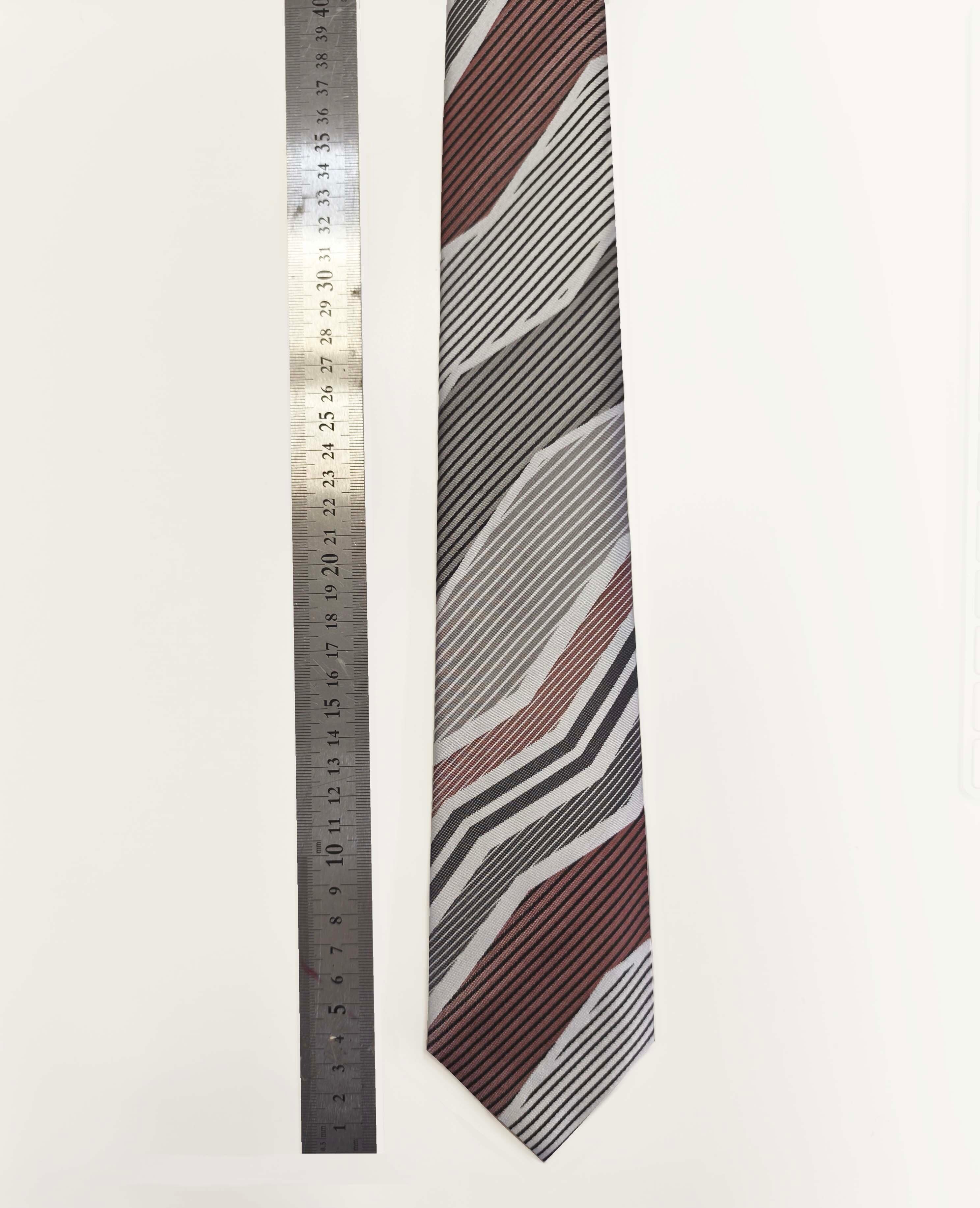 ブラック、ホワイト、グレイのモノトーンで構成されたジグザグストライプが、他にはないユニークな印象を与えるネクタイ。
